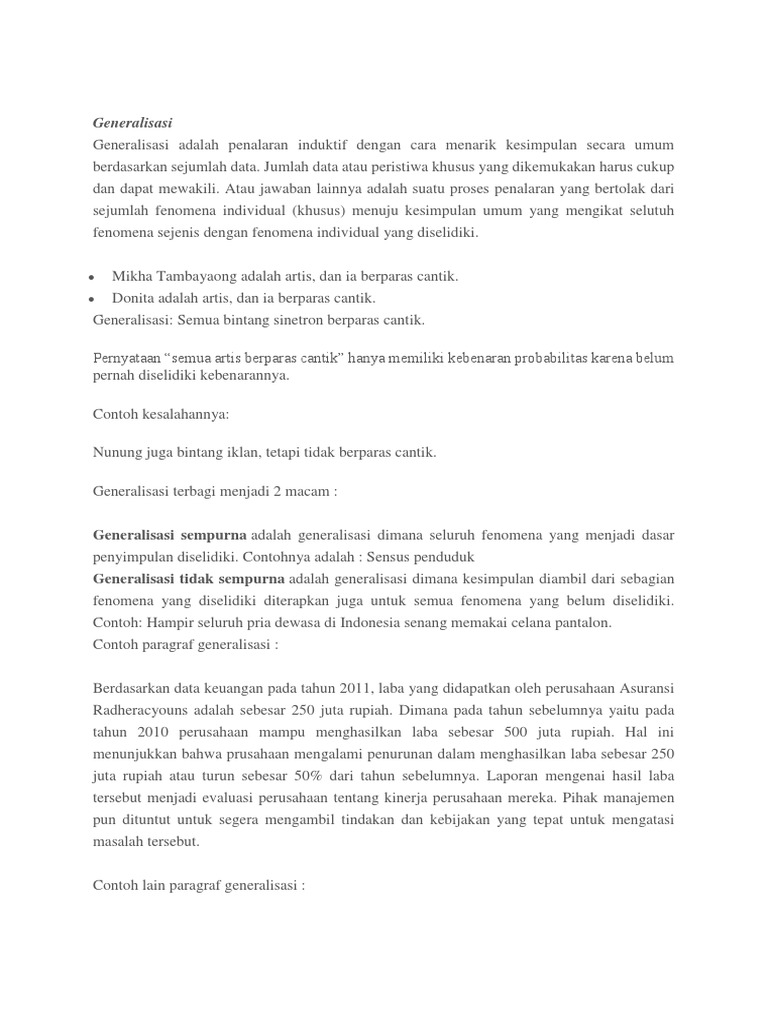 Penggunaan kata ini berkebalikan dengan pengertian menyempit. Paragraf generalisasi yang simple contoh paragraf generalisasi 10 kalimat contoh paragraf generalisasi 2010 contoh soal paragraf generalisasi 2010 contoh paragraf generalisasi 2. Kompas, 30 desember 2010 kalimat pembuka surat lamaran pekerjaan yang sesuai dengan iklan tersebut adalah …. Adapun beberapa artikel yang membahas hal tersebut antara lain: Contoh contoh 1 direktur utama bulog mustafa abubakar meramalkan bahwa kekeringan di sejumlah daerah tidak akan mengganggu stok beras nasional.